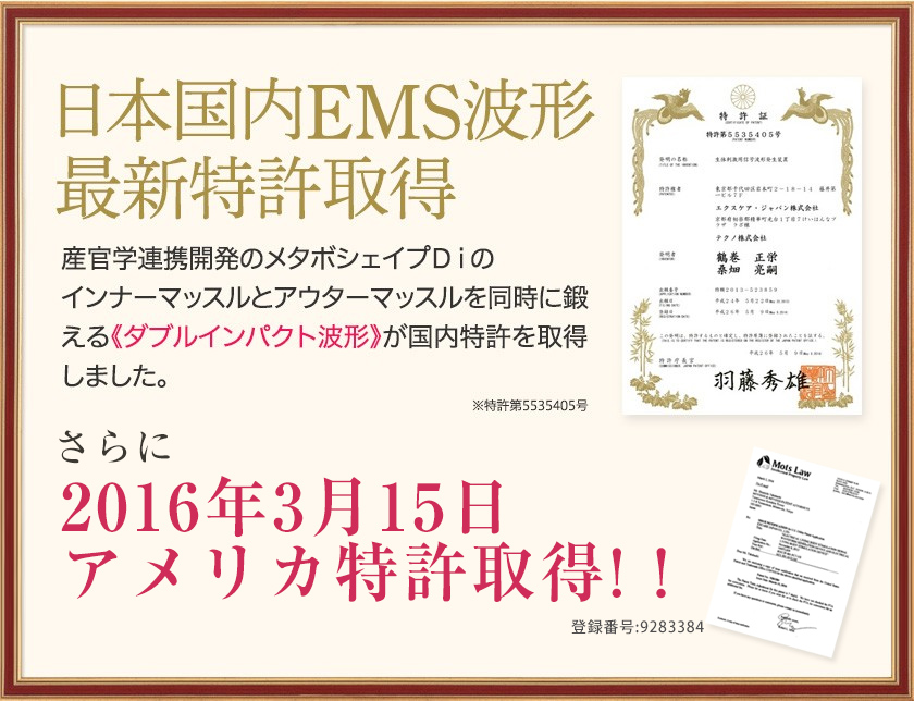 メタボシェイプDiのEMS波形「ダブルインパクト波形」が特許を取得
